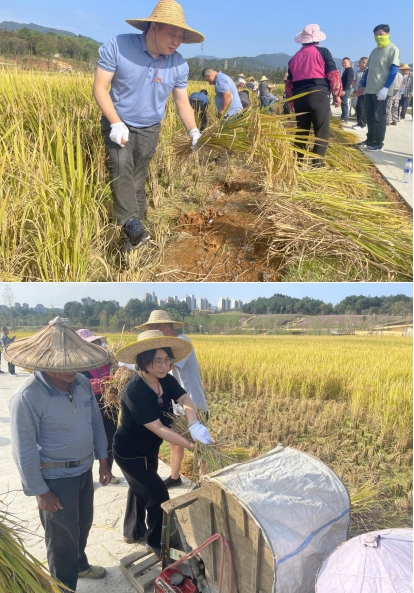秋意漸寒,稻谷飄香。為深入貫徹習近平總書記關于實施鄉(xiāng)村振興戰(zhàn)略和糧食安全的重要論述,以學促干,推動學習貫徹習近平新時代中國特色社會主義思想主題教育見行見效,2023年117上午,市政集團黨支部組織全體黨員干部龍州濕地項目開展“傳承蘇區(qū)好作風 四下基層促發(fā)展”主題黨日活動,全面助力稻谷收割工作
